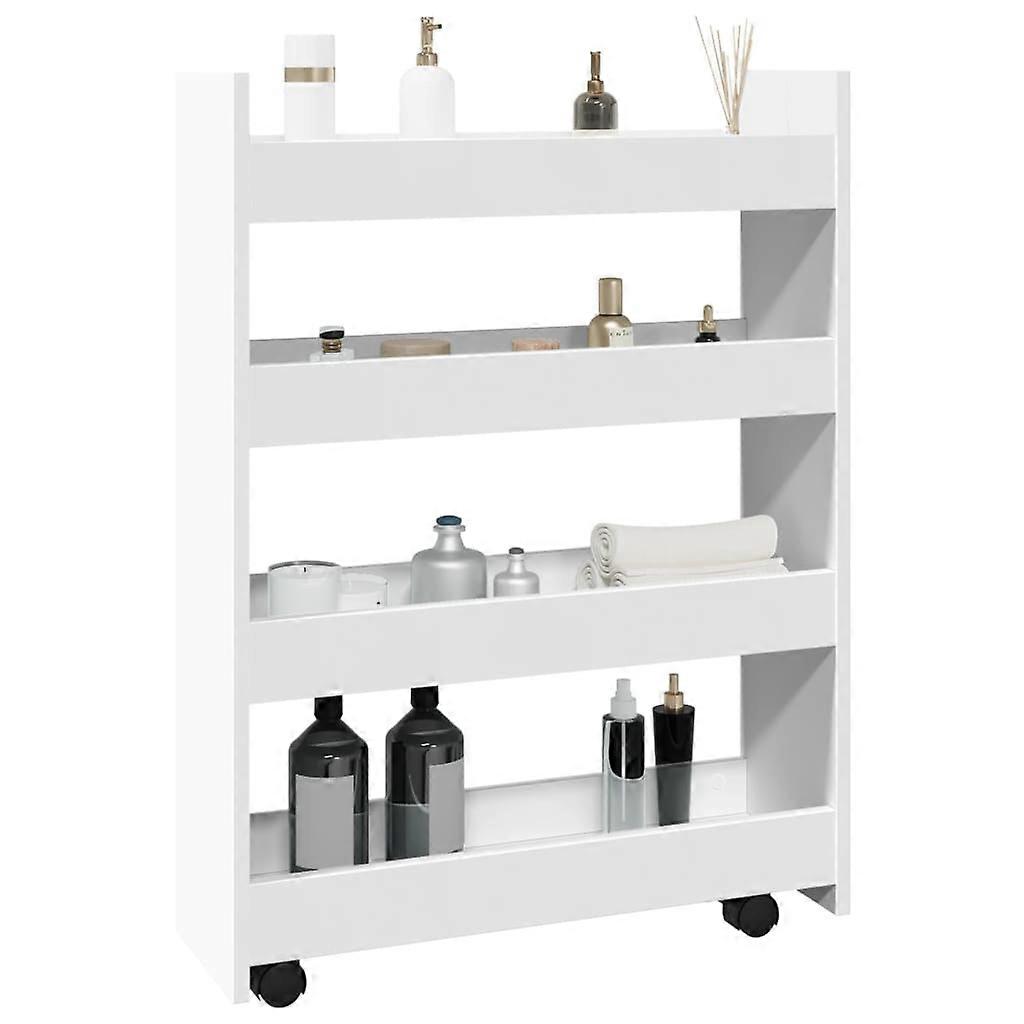Schmaler Aufbewahrungswagen 4 Etagen Weiß Holzwerkstoff