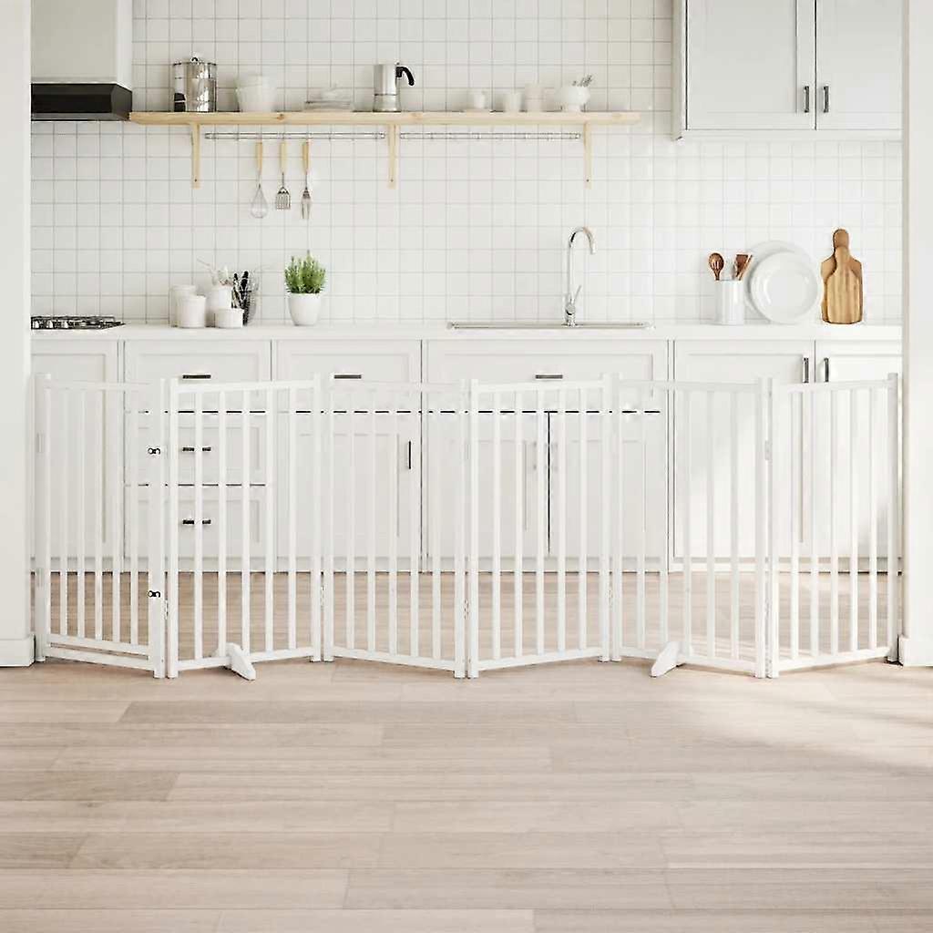 6-tlg. Hundetor mit Tür Faltbar Weiß 300 cm Massivholz Tanne
