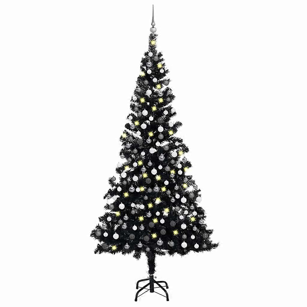Künstlicher Weihnachtsbaum Beleuchtung & Kugeln Schwarz 210 cm