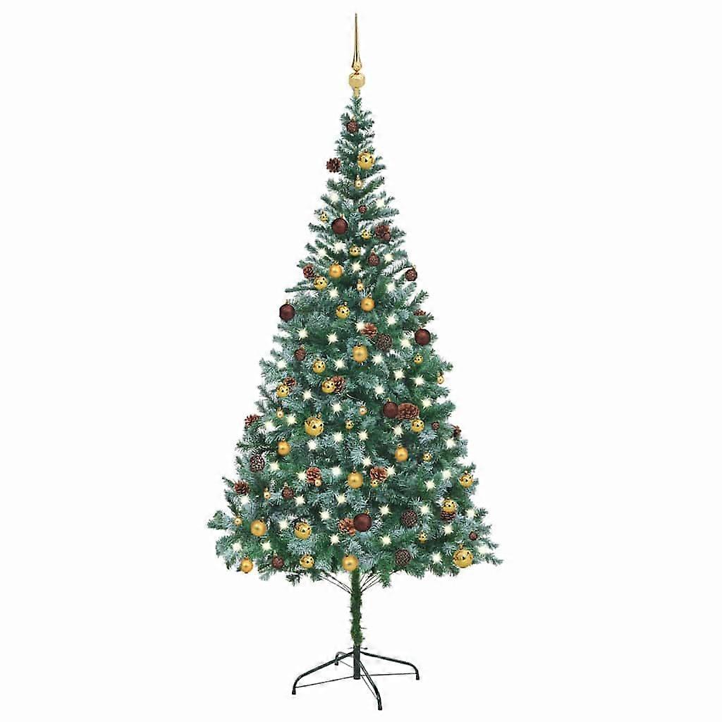 Künstlicher Weihnachtsbaum mit Beleuchtung Kugeln Zapfen 210 cm