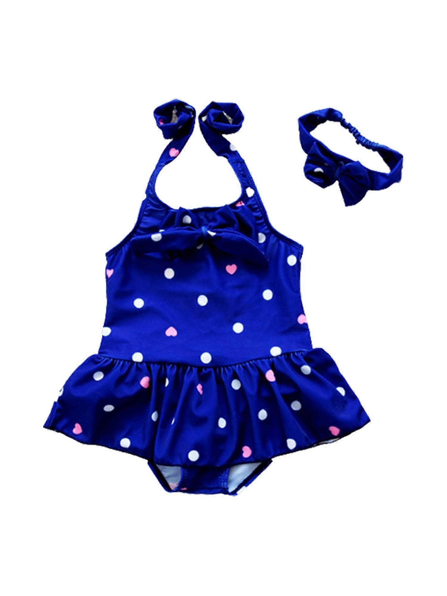 1-8 Years Girls Swimwear One-piece Swimsuit Headband Holiday Swimwear
