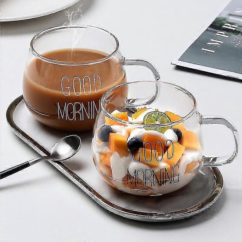 1pc Letter Printed Transparent Creative Glass Coffee Tea Mug Drinks Dessert Breakfast Milk Cup Glass Mugs Handle Drinkware