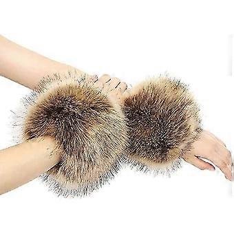1 Çift Peluş Kol Isıtıcıları, Kadınlar İçin Nabız Isıtıcıları, Kürk Suni Deri Manşetler, Eldivenler, Nabız Isıtıcılar, Kazaklar için Suni Deri Kış Bilek Isıtıcıları, C