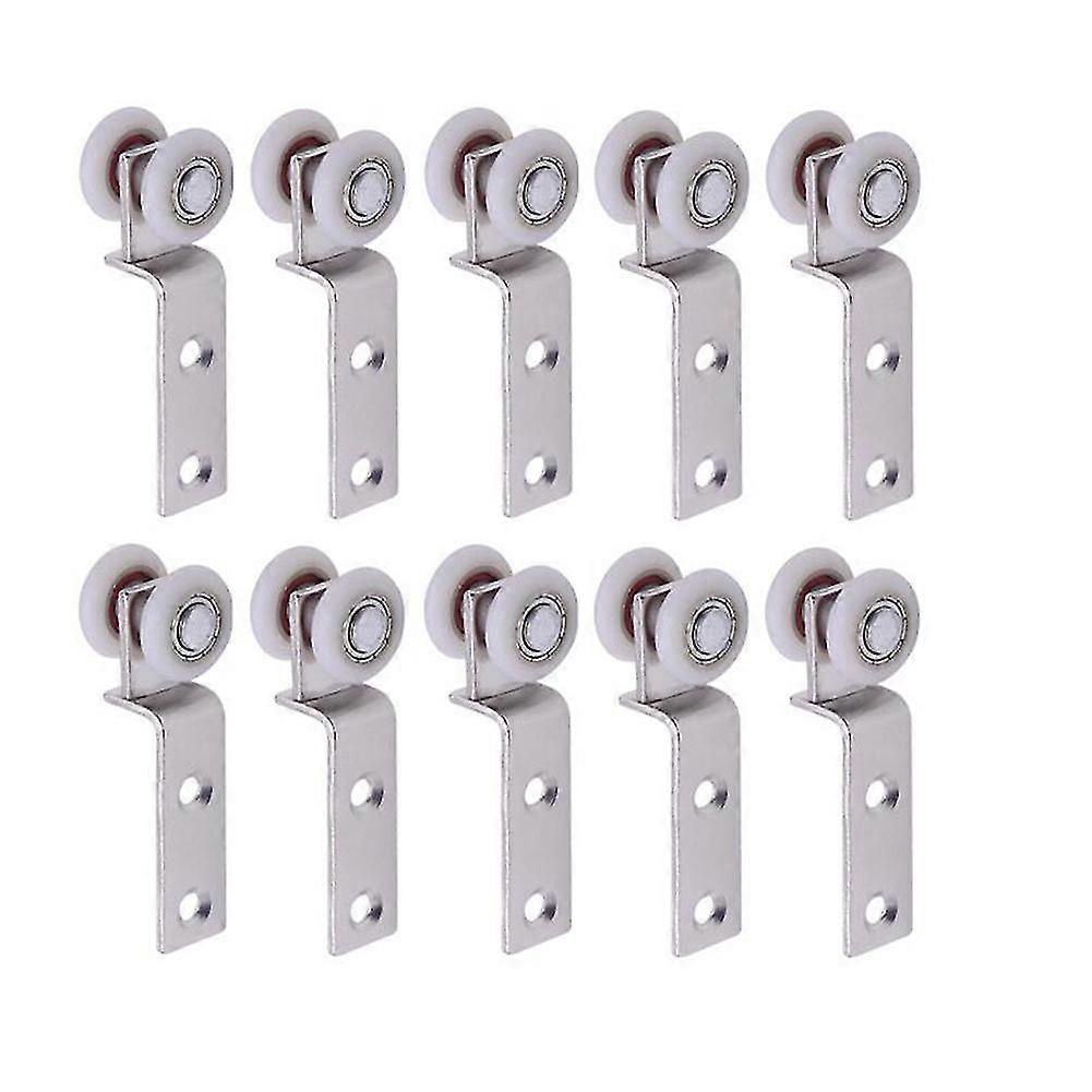 10pcs Bend Pipe Metal Bearing Pulley Block With Two Plastic Wheel For Sliding Door Window Cabinet