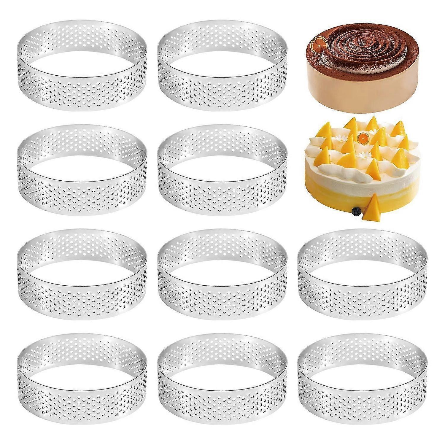 10Pcs Circular Tart Rings With Holes Stainless Steel Fruit Pie Quiches Cake Mousse Mold Kitchen Baki
