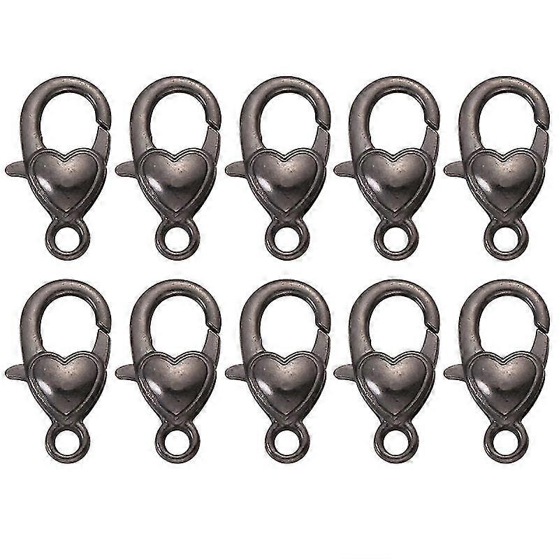 10pcs Heart Shape Lobster Clasps Alloy Charms Diy Accessory For Keychain Bag Jewelry Making (black)