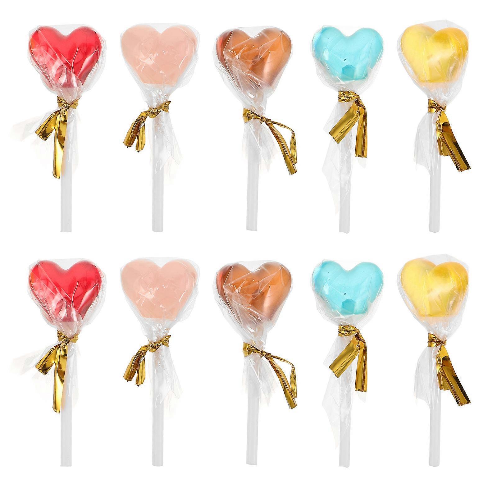 10pcs Miniature Resin Heart Shaped Lollipops Tiny Food Model for Dollhouse and Garden Decor Assorted Color