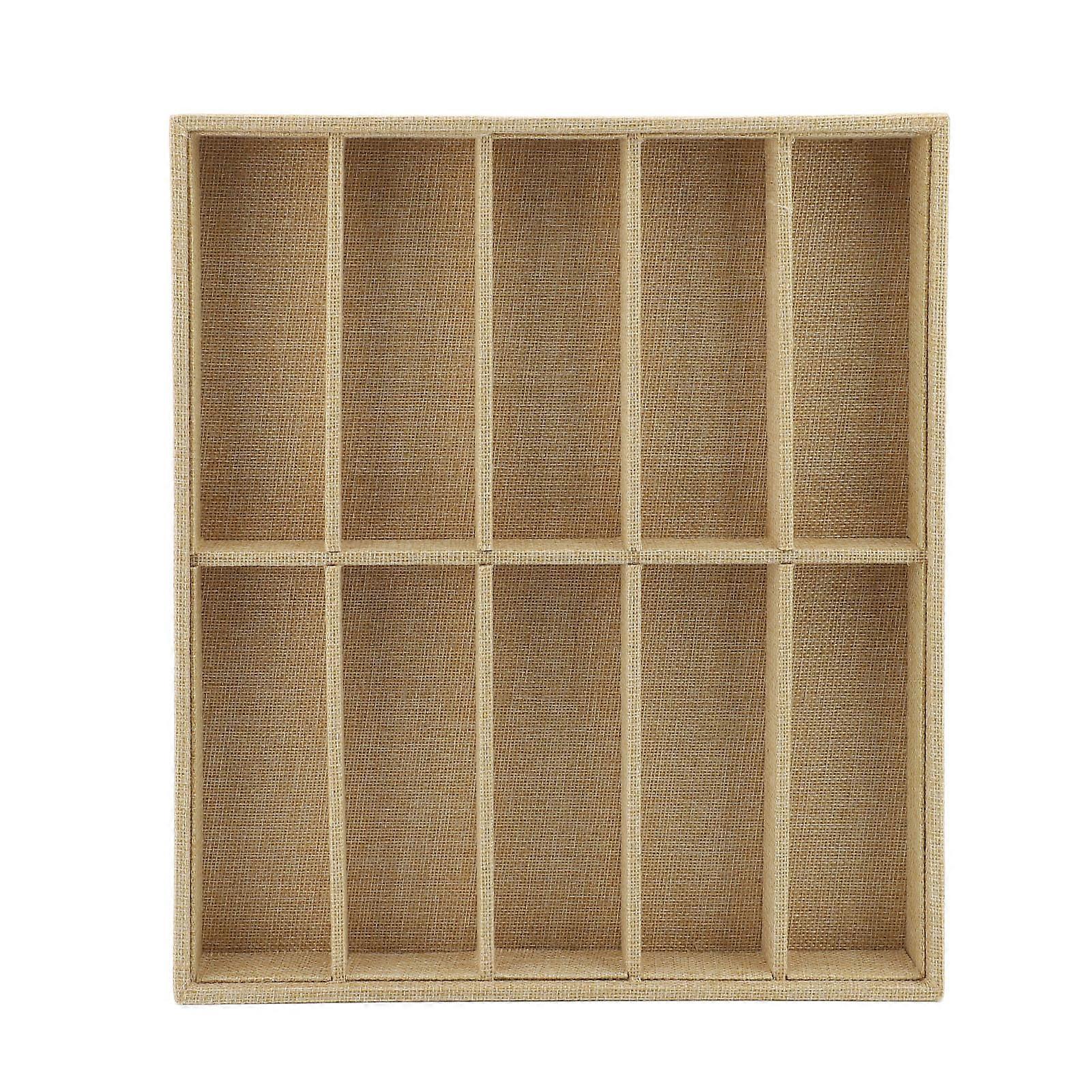 10 Grid Sunglasses Display Box Organizer Tray for Eyeglasses and Sunglasses with Jute Eyewear Holder and Jewelry Storage Tray