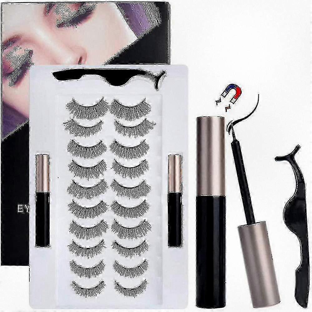 10 Pairs Magnetic False Eyelashes with Easy Application for Natural Look.