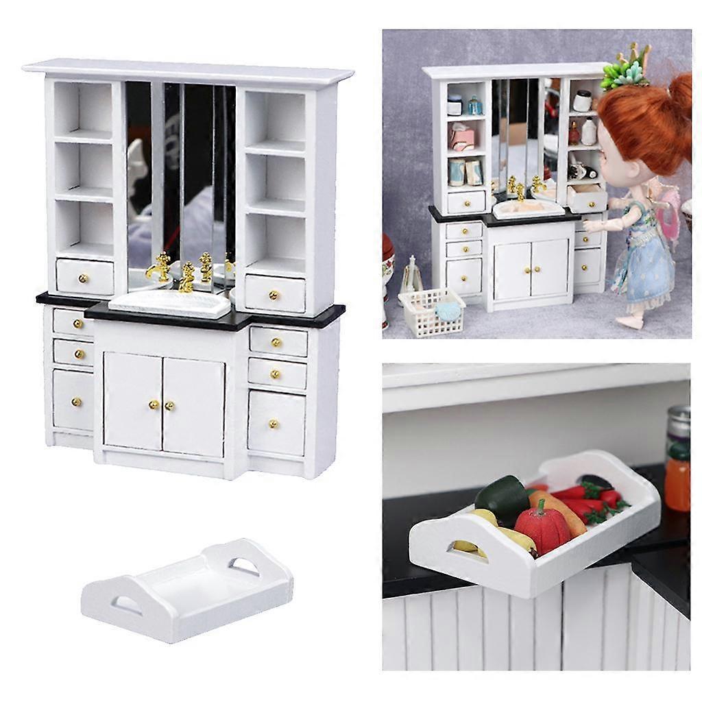 1:12 Wooden Bathroom Sink Cabinet Miniature Wash Basin With Serving Tray
