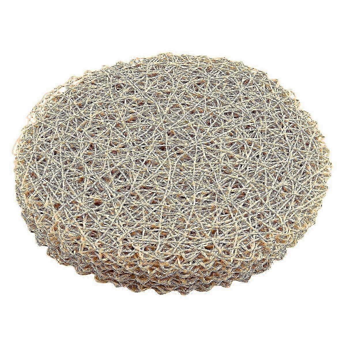 12pcs Paper Braided Round Placemats Non-Slip Heat Table Mats for Dining Tables Indoor & Outdoor Place Mats Beige