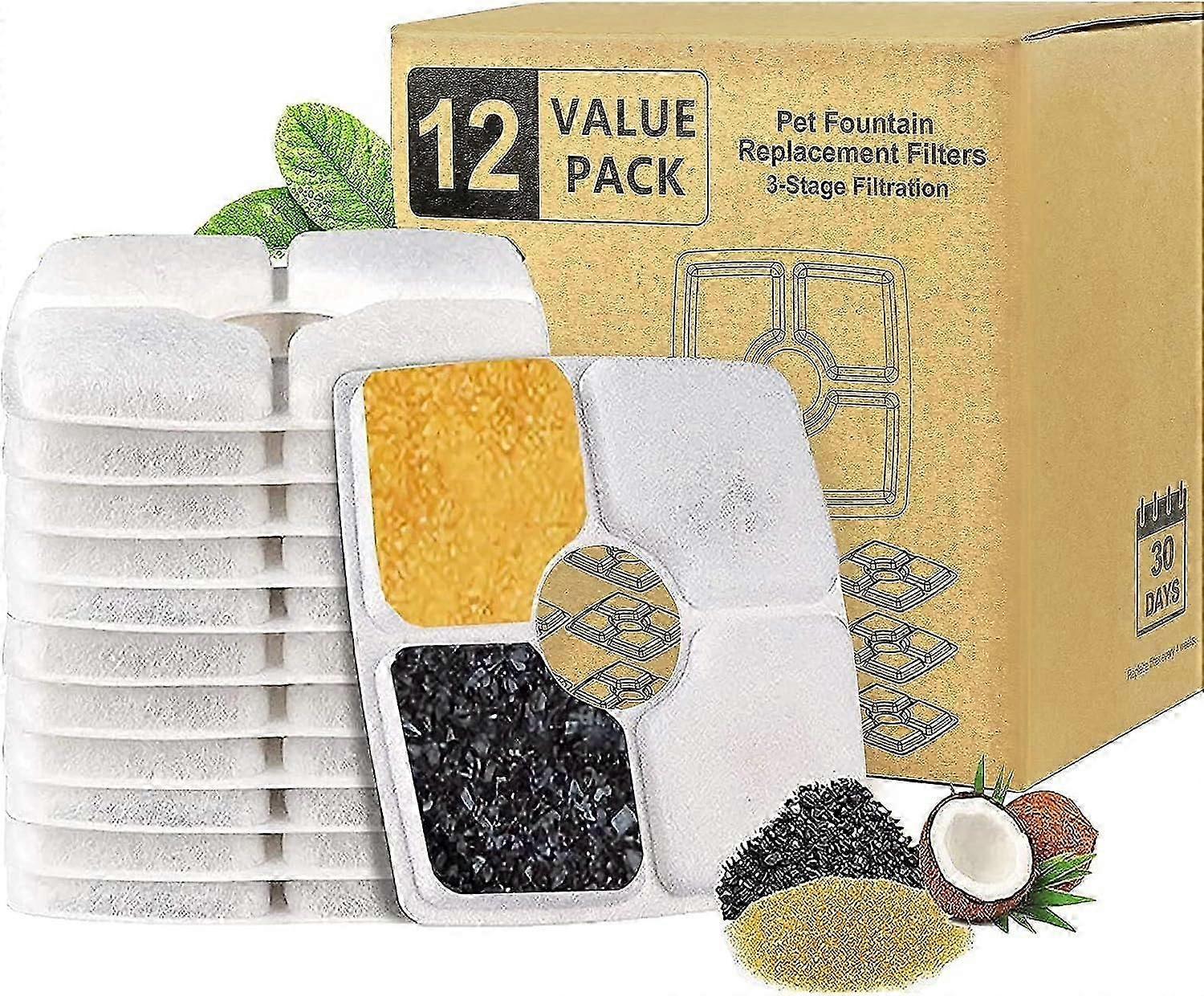 12 Square Cat Fountain Filters - Activated Carbon and Ion Exchange Resin (12 Pieces)