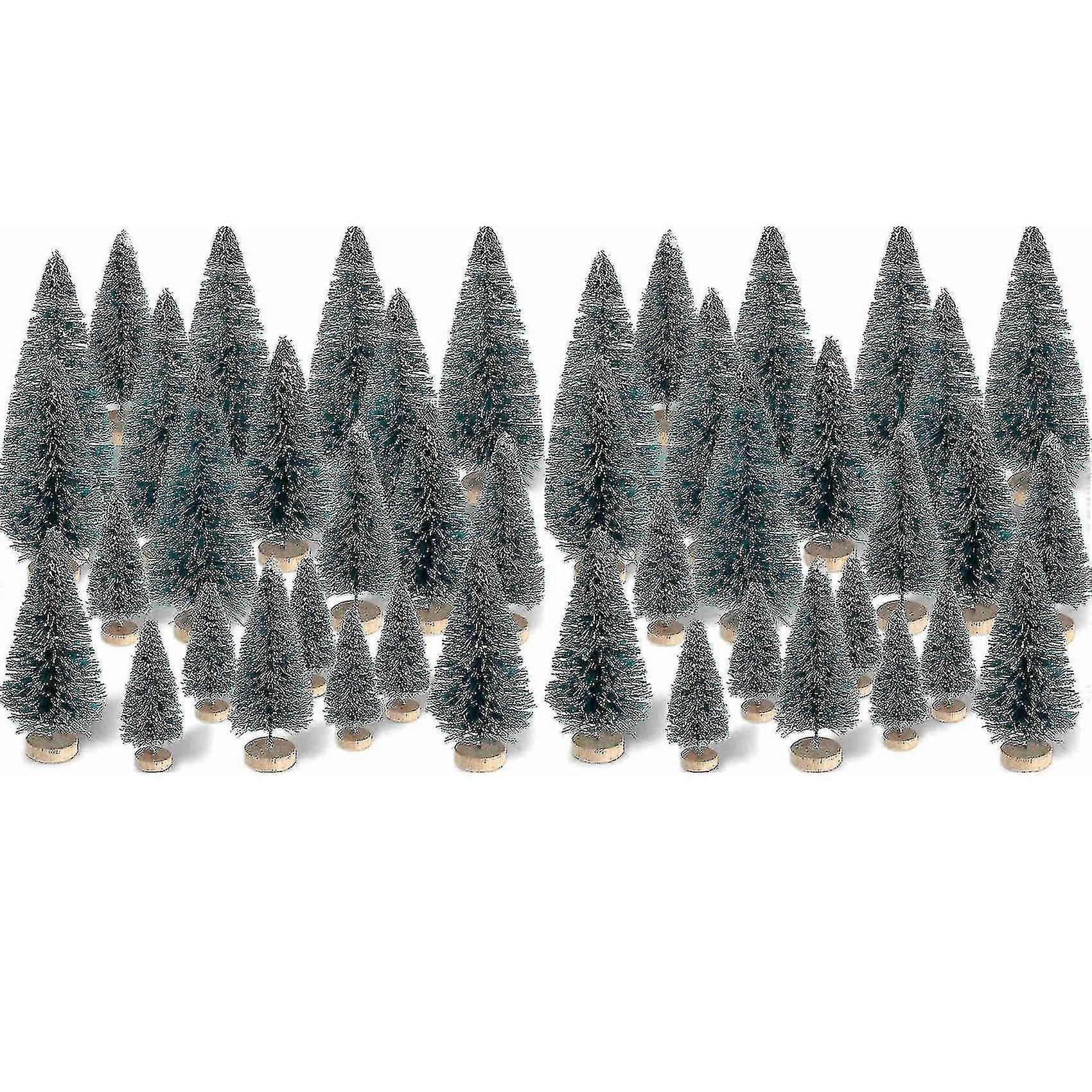 120 Pieces Mini Sisal Snow Frosted Trees Winter Pine With Wood Base