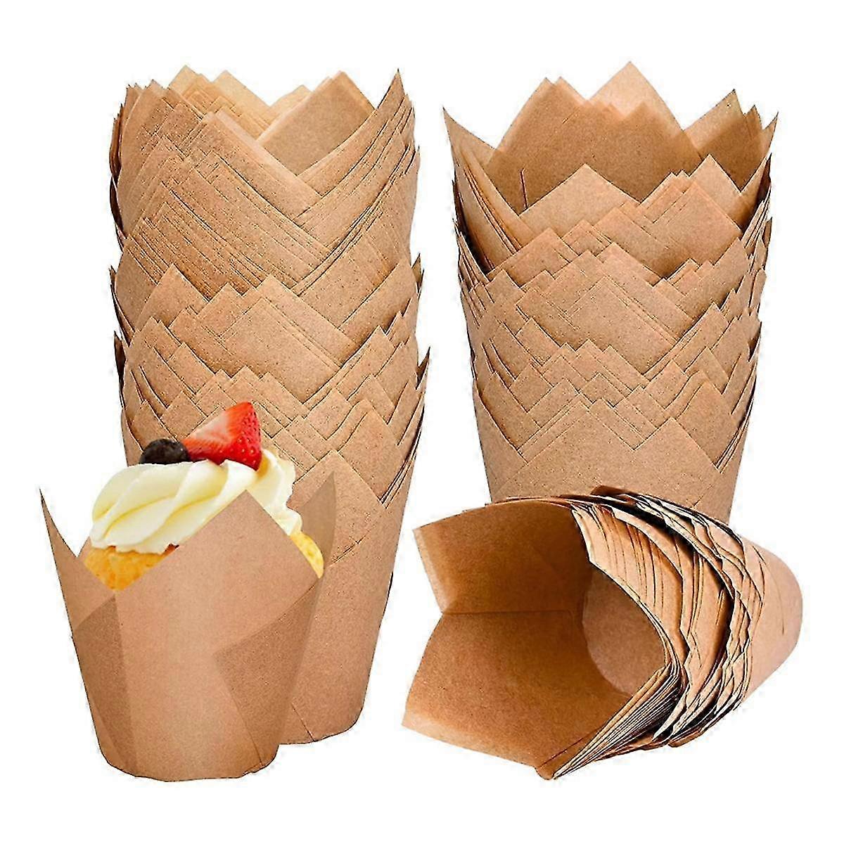 120 Counts Natural Tulip Cupcake Liners For Baking Cups, Parchment Paper Muffin Liners Holders, Tulip Cupcake Liners
