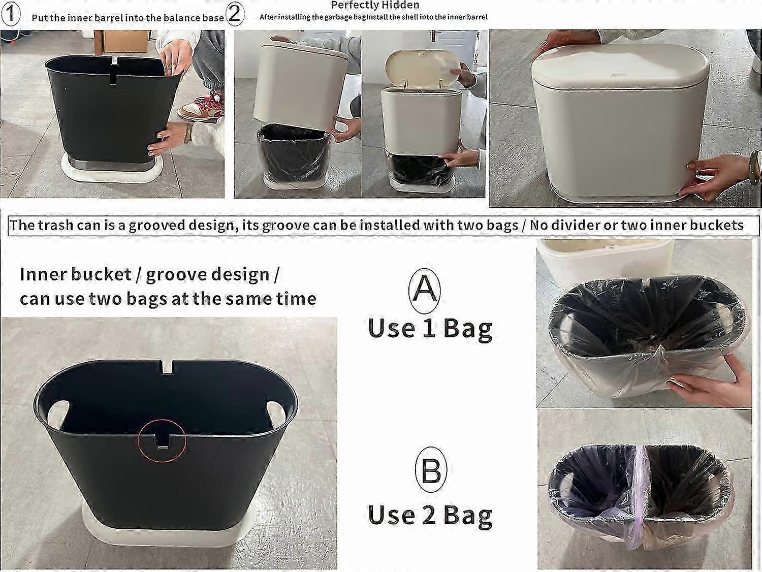 12L Rectangular Plastic Bathroom Trash Can