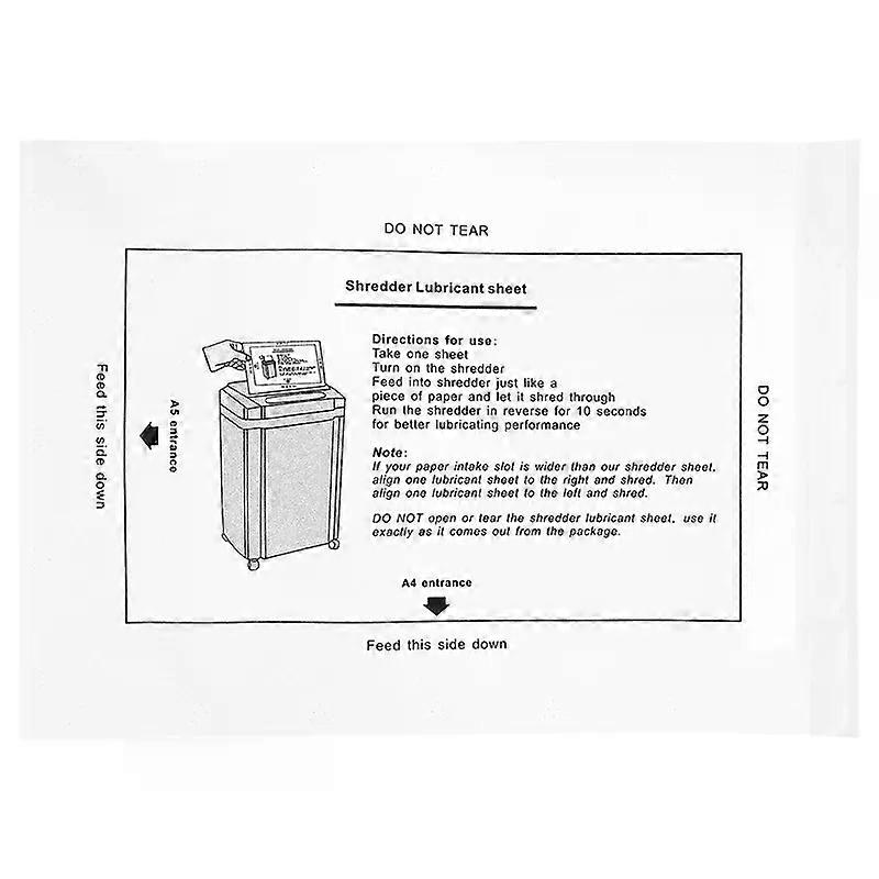 12PCS Paper Shredder Lubricant Sheets Shredder Lubricating Oil Portable Paper Type Lubricating Oil For _x000D_ _x000D_ _x000D_ _x000D_ _x000D_ _x000D_ _x000D_ Wide Application: The lubricant pack is suitable for most models of shredders. Easy to Use: No need to get your hands dirty; just like you shredded paper from the entrance, after three seconds, you can complete the lubrication maintenance of the shredder cutter! High Efficiency: Effectively clean and lubricate the shredder, improve the efficiency of the shredder, and provide users with faster office scenes. Multi-function: Effectively prevent shredder paper jams. Diecription: 1. Do not open or tear the lubricant sheet prior to use . 2. Faced a single sheet directly into the slot of shredder. 3. Stop shredding for 10 seconds when half of a sheet shattered for better lubricating performance. 4. Run the machine in reverse for 10 seconds after shredding the sheet. Specification: Name: Shredder Lubricating Oil Pack Size: about 21*14CM/8.27*5.51in Colour:White Material:lubricating oil Package Contents: 12*Shredder Lubricating Oil Only the above package content, other products are not included. Note: Light shooting and different displays may cause the color of the item in the picture a little different from the real thing. The measurement allowed error is +/- 1-3cm. _x000D_ _x000D_ _x000D_ _x000D_ _x000D_ _x000D_ _x000D_ _x000D_ _x000D_ _x000D_ _x000D_ _x000D_ _x000D_ _x000D_ _x000D_ _x000D_ _x000D_ _x000D_ _x000D_ _x000D_ _x000D_ _x000D_ _x000D_ _x000D_ _x000D_ _x000D_ _x000D_ _x000D_ _x000D_ _x000D_