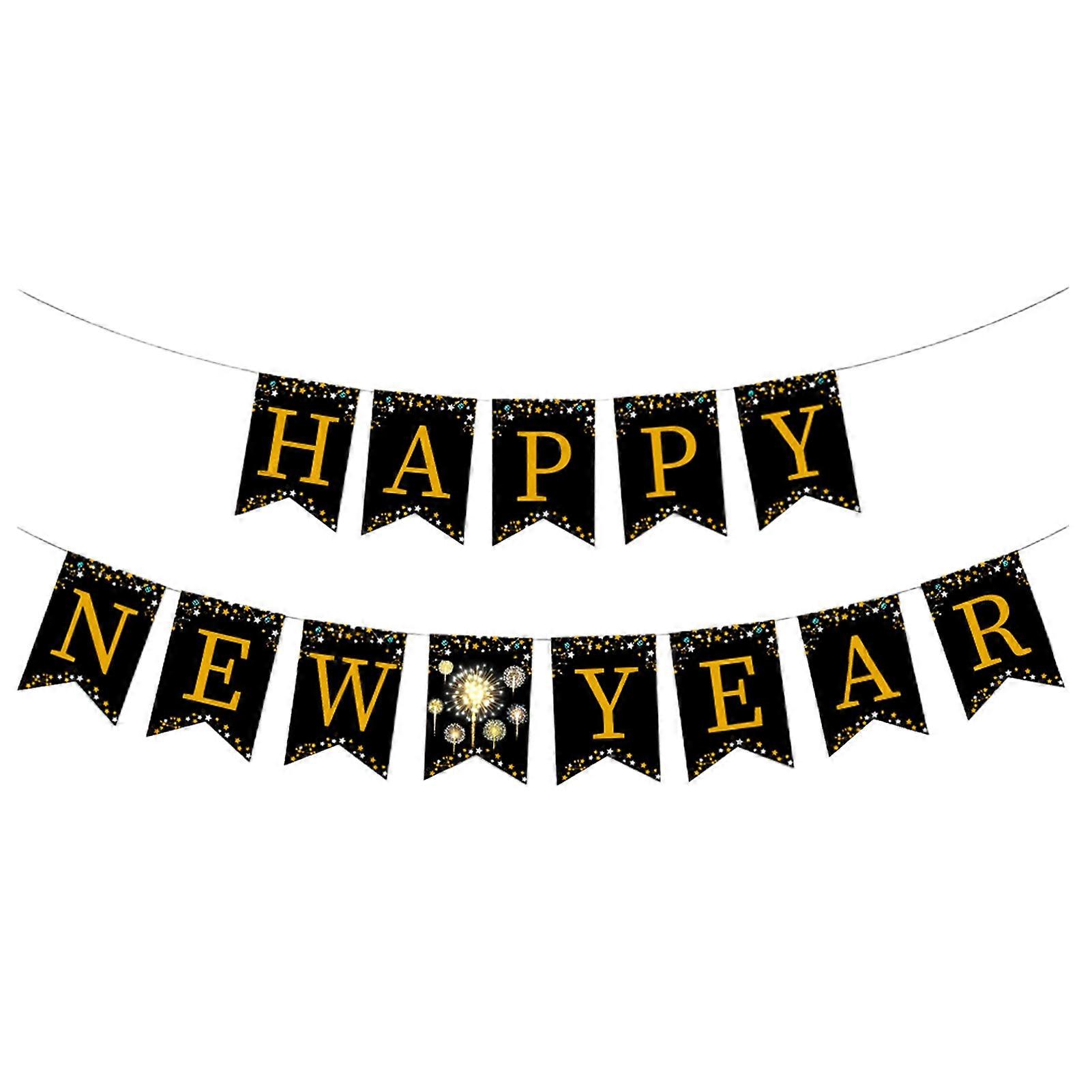 13Pcs/Set Party Banner Gold-Printed Multi-purpose Eco-friendly Glitter 2022 Happy New Year Banner for New Year Qinhai