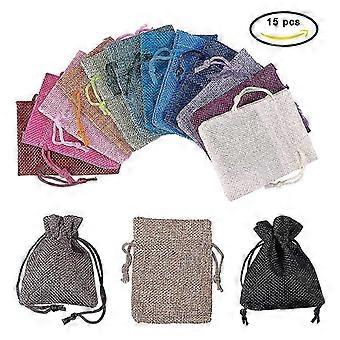 15 Color Burlap Packing Pouches Drawstring Bags 2.7x3.5'' Gift Bag Packing Storage Linen Jewelry Pouches Advent Calendar Bags For Wedding Party Shower