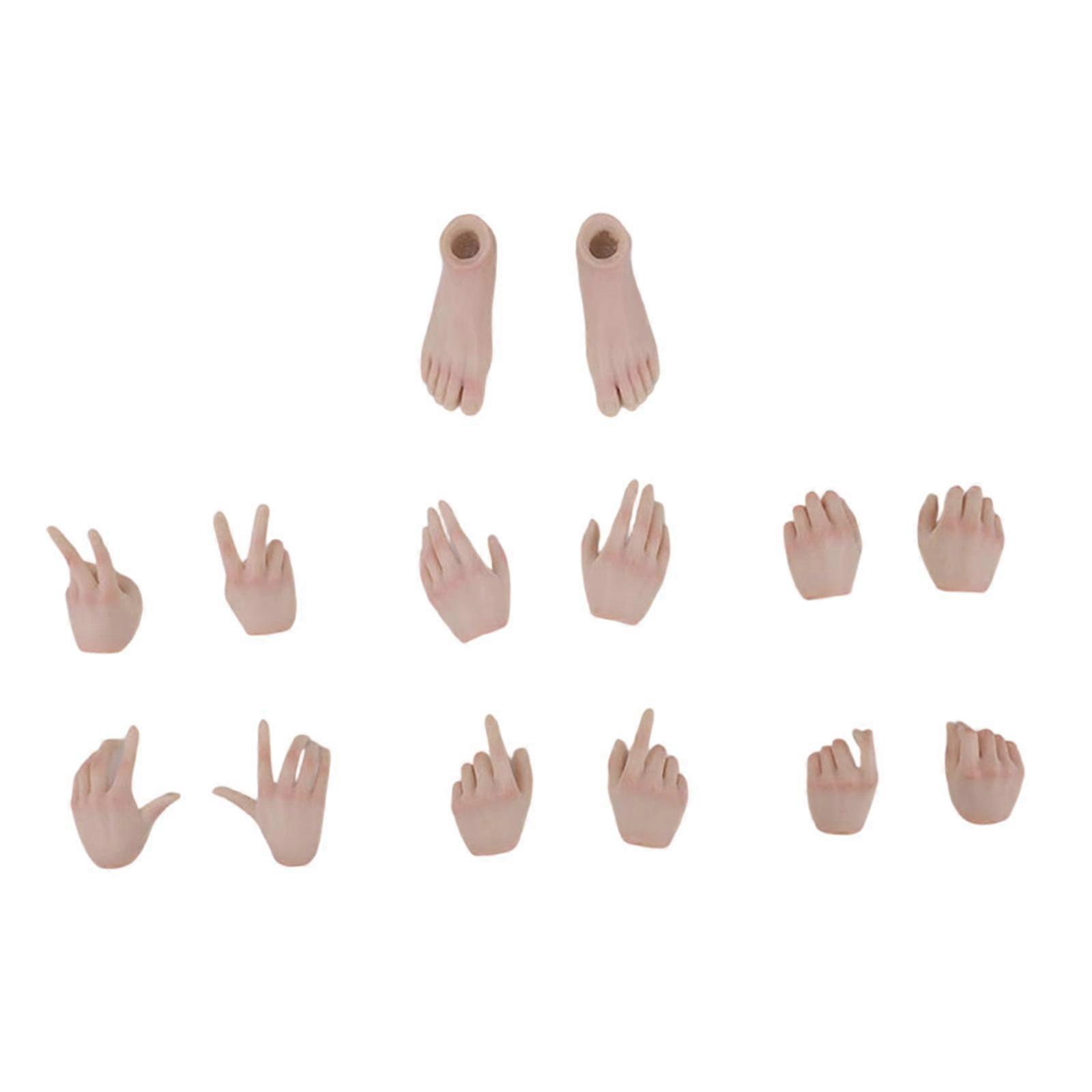 Description: 【Material】: 1/6 Hand Feet Models are made of ABS material. they offer durability for long term use 【1/6 Scale Hands Feet Models】: 1/6 Scale Hands Feet Models have a interface for 1/6 rubber coated dolls 【 Connect tightly】: Hands Feet Models connect tightly to dolls. When you move the doll around, ensuring a stable doll structure. 【 Accessories】: Female Figure Accessories are easy to install. Even if you are beginer to doll DIY, you can quickly attach them to the doll 【 Ideal gift 】: Figure Accessories are an ideal gift for DIY enthusiasts. Specification: Material: PP     Size Chart: Packaging 12cm x 12cm x 5cm / 4.72 x 4.72 x 1.97 inch Package Includes: 6 pairs of hands models 1 pair of feet models Note: Please allow 1-3mm measuring deviation due to manual measurement. Due to the different monitor and light effect,the actual color of the item might be slightly different from the color showed on the pictures.Thank you!