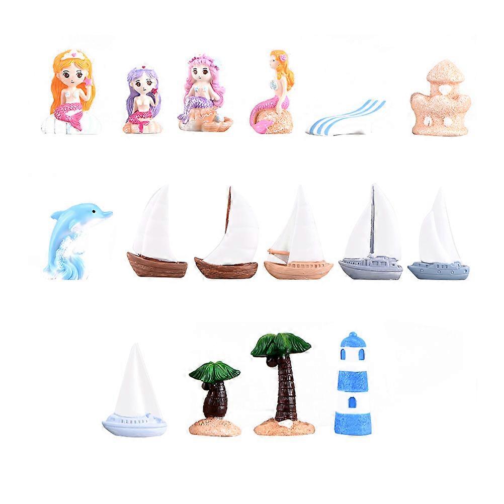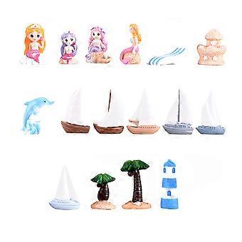 16pcs Mini Scene Ornaments, Creative Micro Landscape Decorations, Sea Style Resin Art Adornments with Random Patterns for Home Decor, Coastal