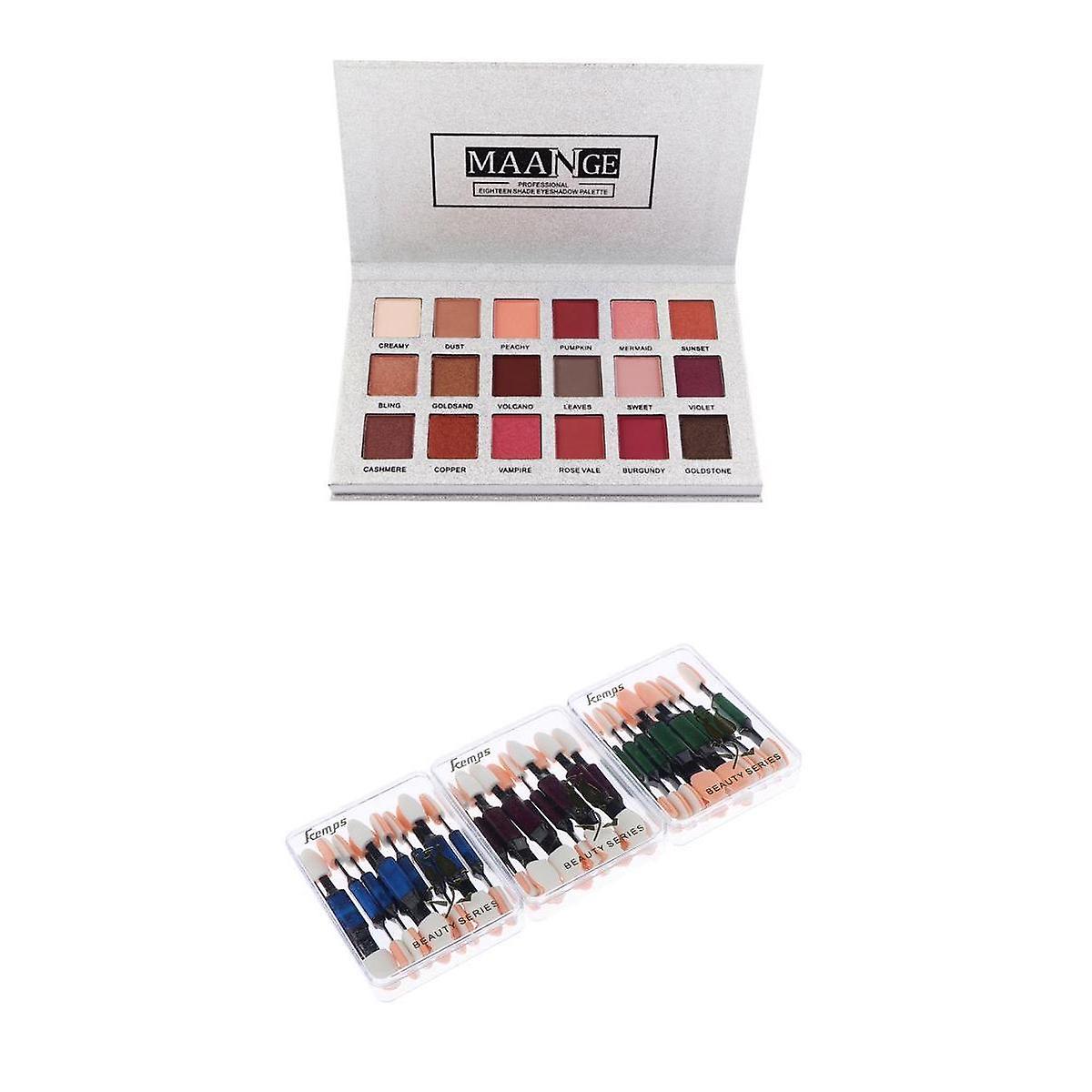 18 Colors Eyshadow Makeup Palette Matte Shimmer+Disposable Sponge Brush Sets