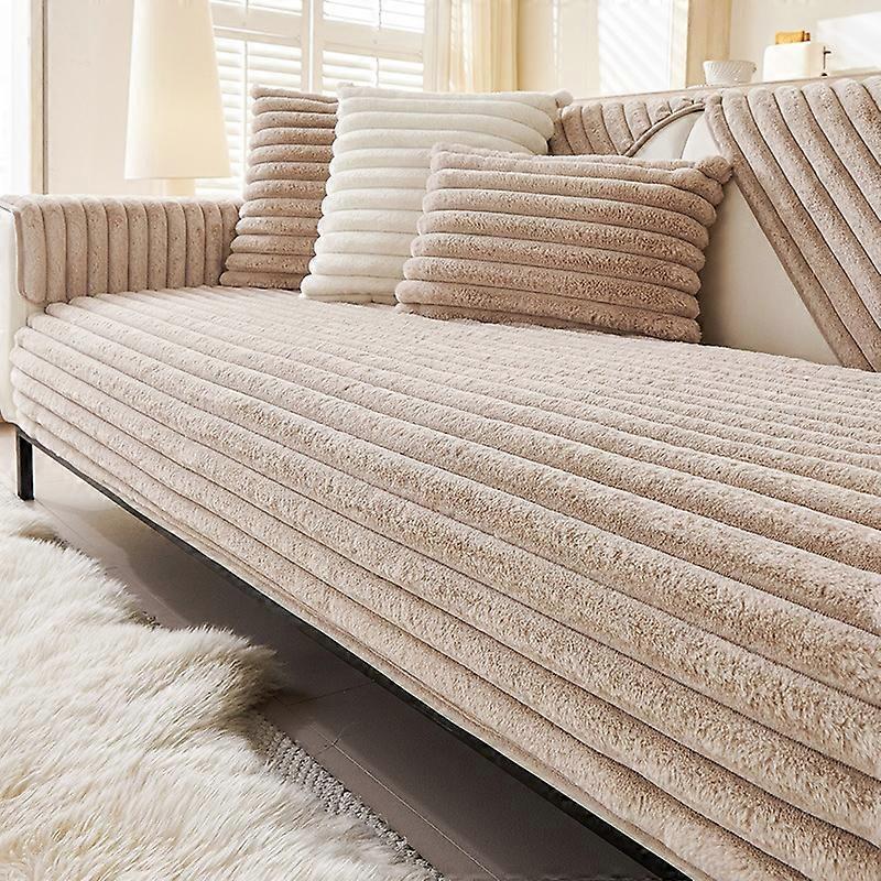 1PC Striped Faux Rabbit Fur Non-Slip Sofa Cushion Cover, Ultra Soft & Anti-Skid Sofa Towel Plush Home Decor for Living Room