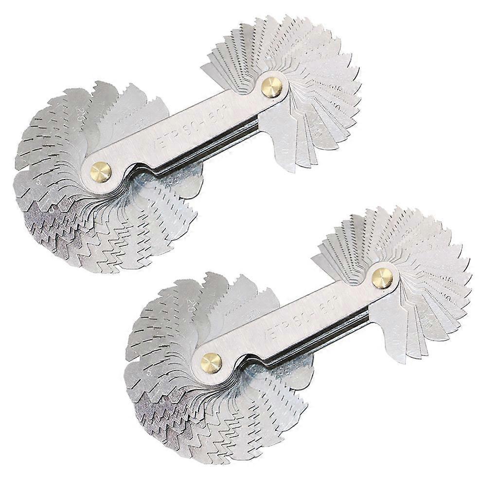 Description: Narrow-leaved designed to measure the external and internal threads - even in small holes. Product name: Thread gauge Material: 45 cold-rolled steel Unfold Length: Approx. 107mm/ 4.21inch Folded Lenngth: Approx. 67mm/ 2.64inch Color: Silver Package Includes: 2 Set Screw Pitch Gauge Note: Due to the light and screen setting difference, the item's color may be slightly different from the pictures. Please allow slight dimension difference due to different manual measurement.