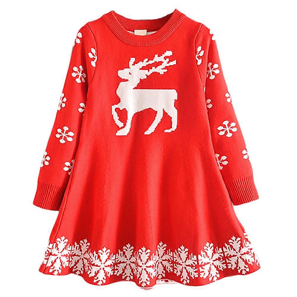 2-7 Years Kids Christmas Print Dress Long Sleeve Sweater Dresses