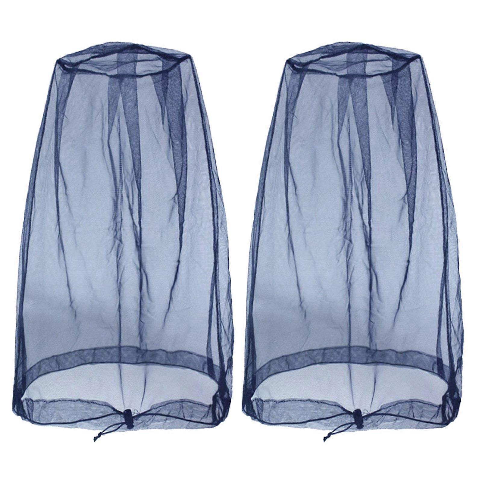 2Pcs Mesh Insect Shields Face Mask Cover with Drawstring Fly Face Netting Outdoor Mosquitoes Head Net Mesh Enduring Navy blue XL