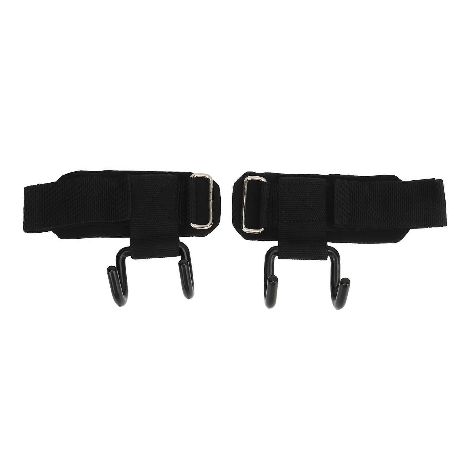 2pcs Heavy Duty Weight Lifting Hooks with Wrist Wraps Power Training Gym Grips Straps for Weightlifting Black