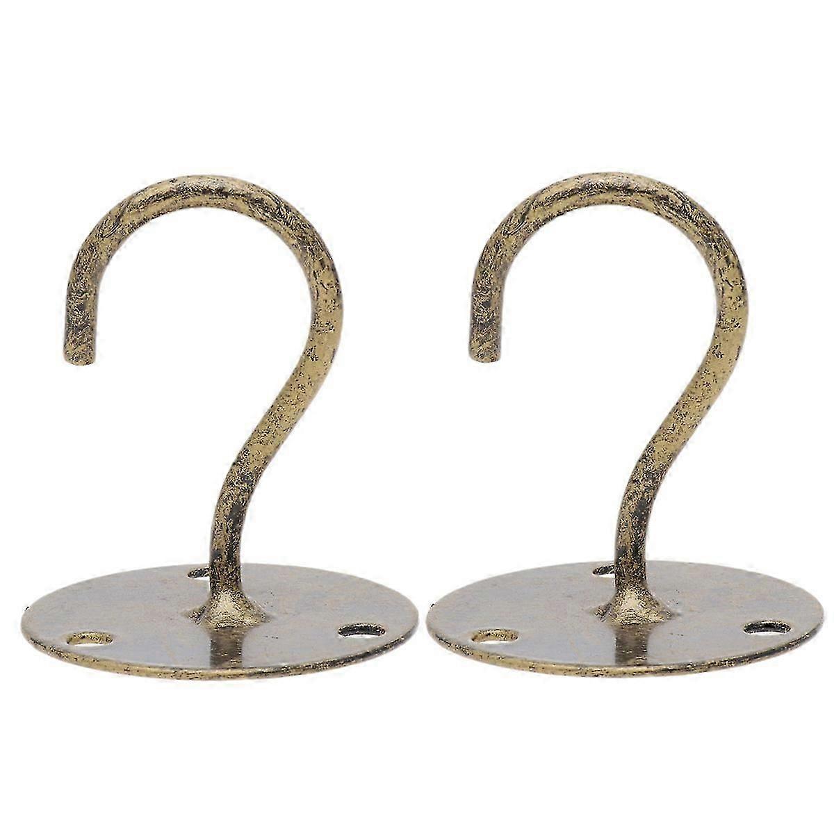2 PCS Overhead Hooks Cabinet Wardrobe Hooks Porch Lantern Mosquito Net Ceiling Hooks Small Elephant Trunk Shaped Hooks (Bronze)