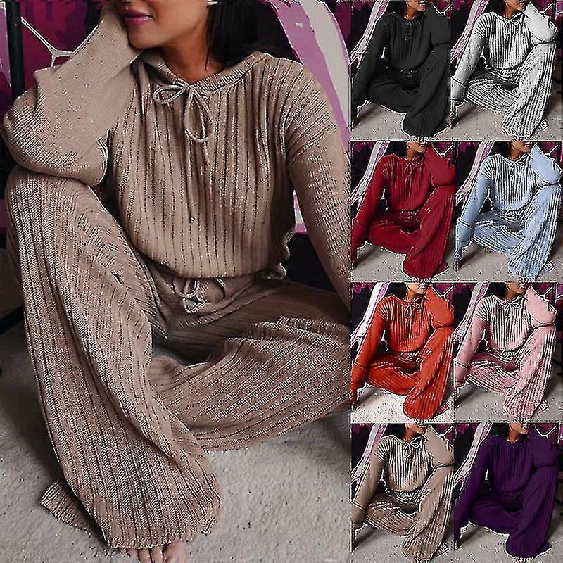 2pcs Womens Tracksuits Set Ladies Hooded Loose Loungewear Knitwear Tops + Pants