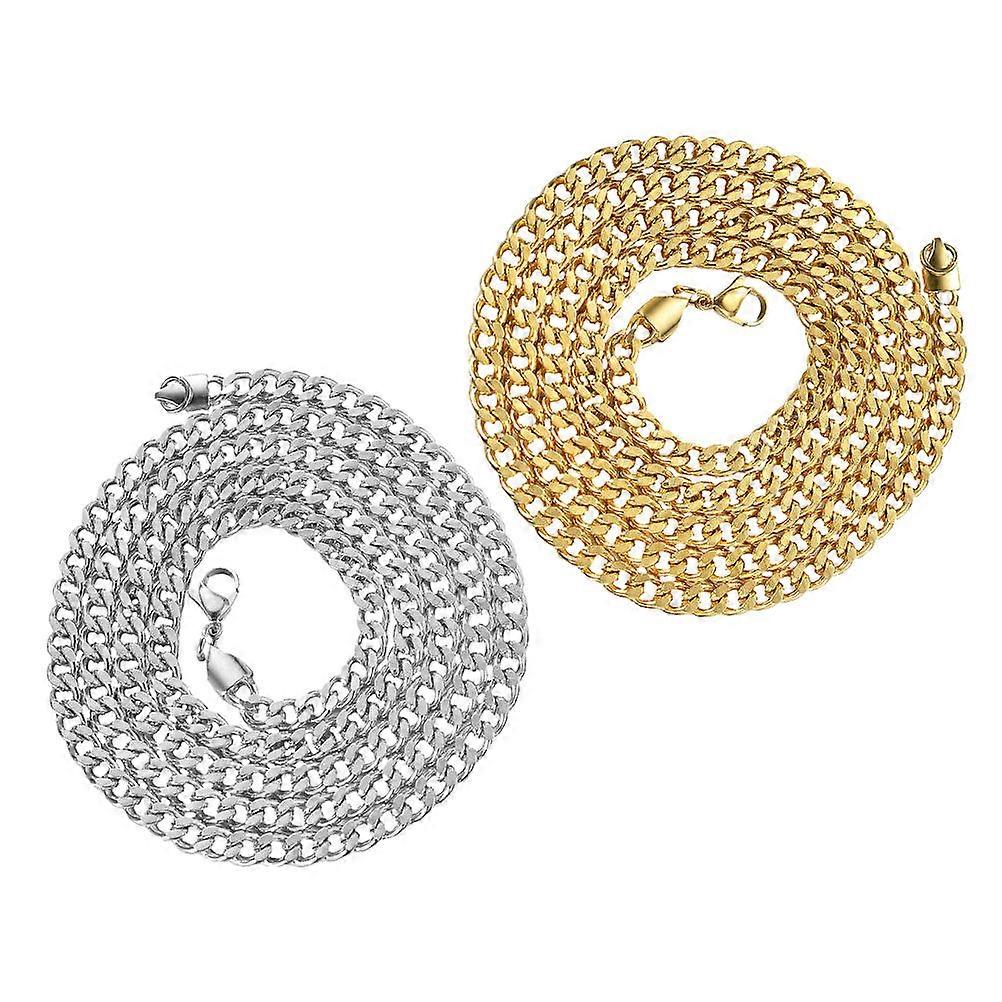 2pcs Stainless Steel Link Chain Necklace for Men Fashionable Neck Jewelry for Men and Women
