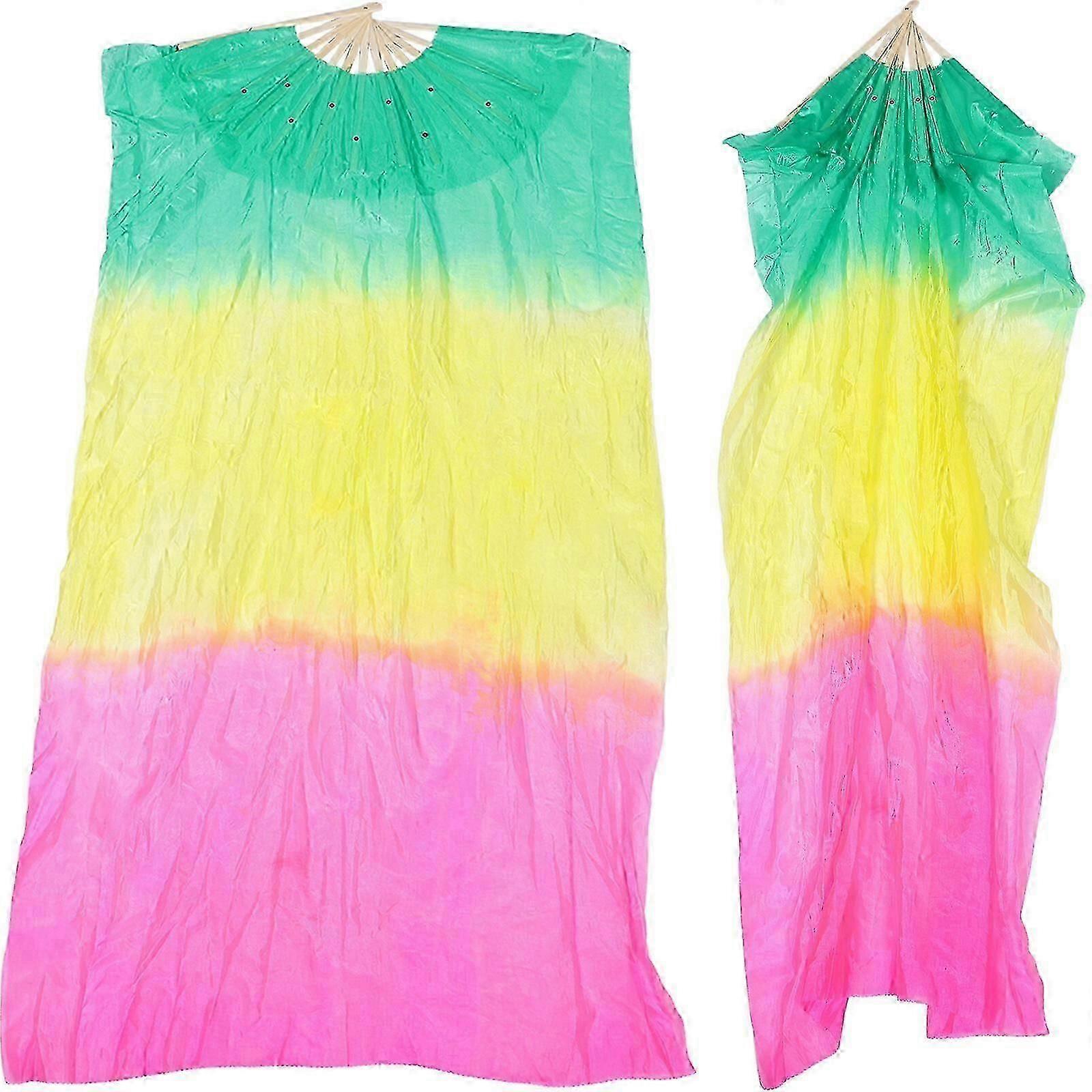 2pcs Creative Long Silk Dancing Fans Exquisite Color Fan Veils Belly Dance Fans For Decor