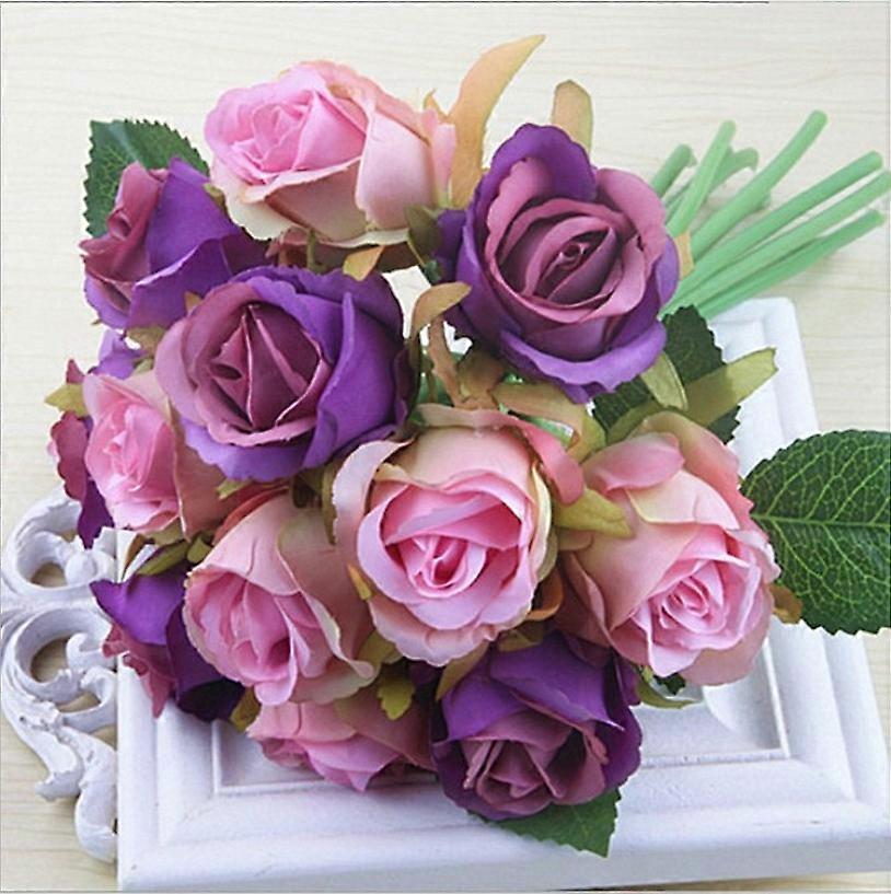 2 bunches of artificial roses, 12 decorative bouquets, suitable for home office gatherings, brides and wedding decorations (purple)