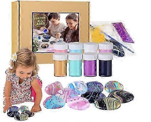 2 in 1 glow in the dark rock painting kit, painted stone craft art toys with pouring rocks