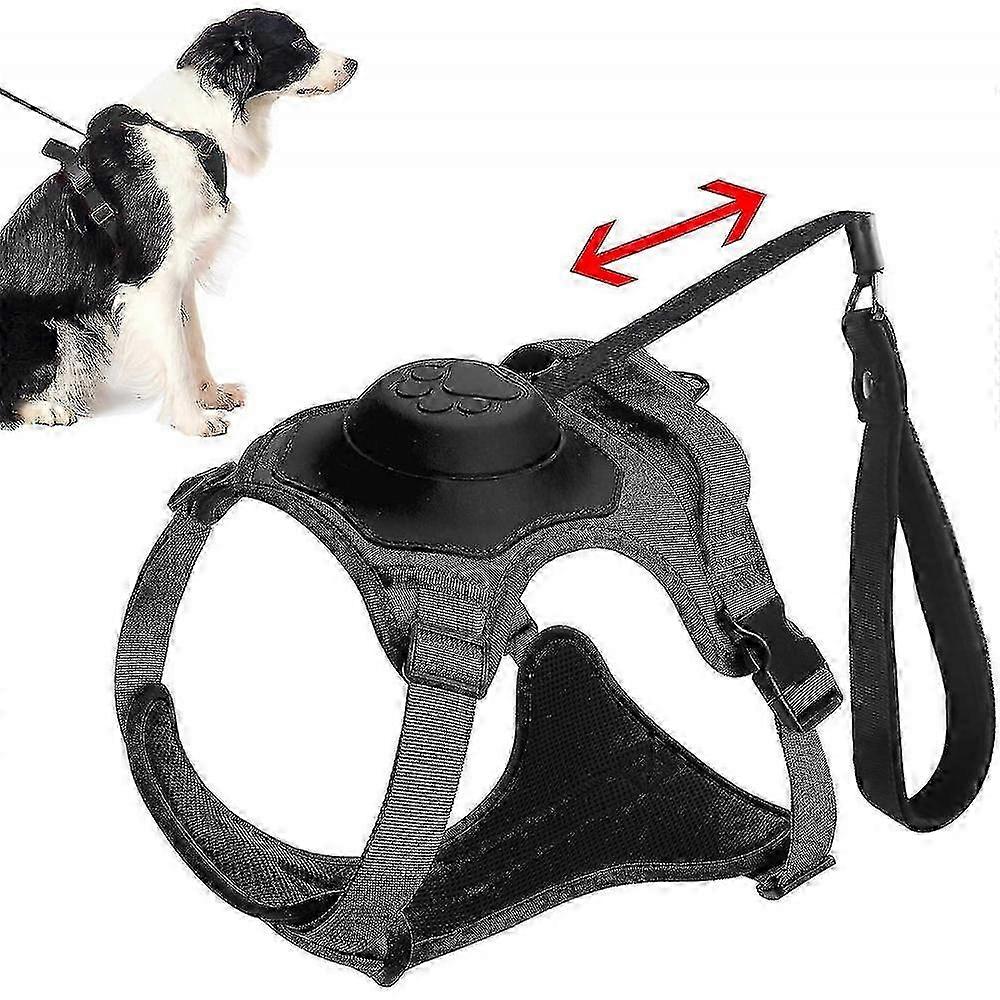 2 In 1 No Pull Dog Harness & Retractable Dog Leash, Reflective Service Dog Harness, Adjustable Dog Vest With Control Handle LR-L-Black