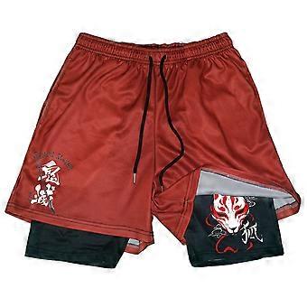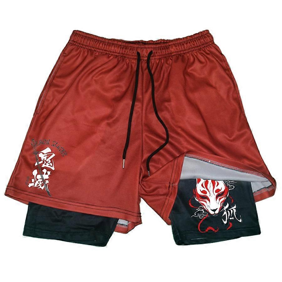 2 In1 Gym Shorts Demon Slayer Anime Shorts Black for Men Women Bodybuilding Fitness Summer Mesh Quick Dry Board Shorts to Beach