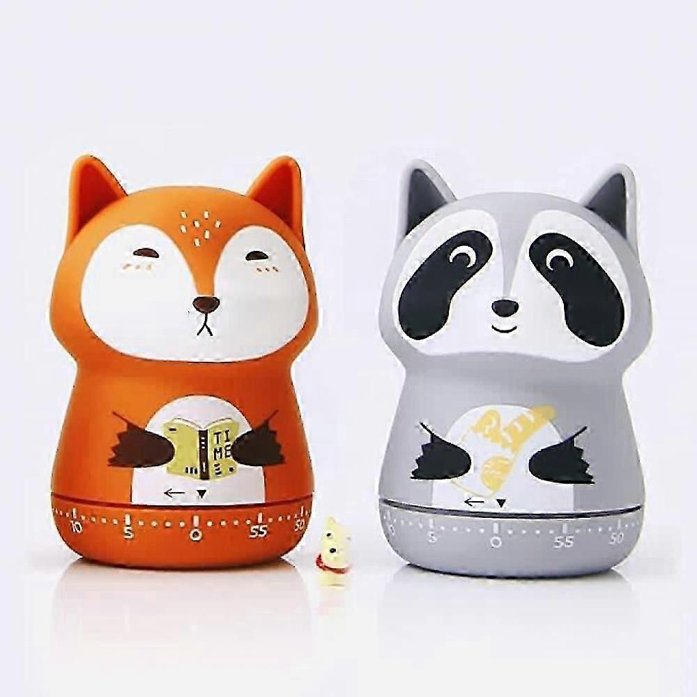 2 Pack Cute Kitchen Timer,100% Mechanical Timer for Kids,60 Minute Egg Timer for Cooking/Reading/Do Sports. (Fox and Raccoon)