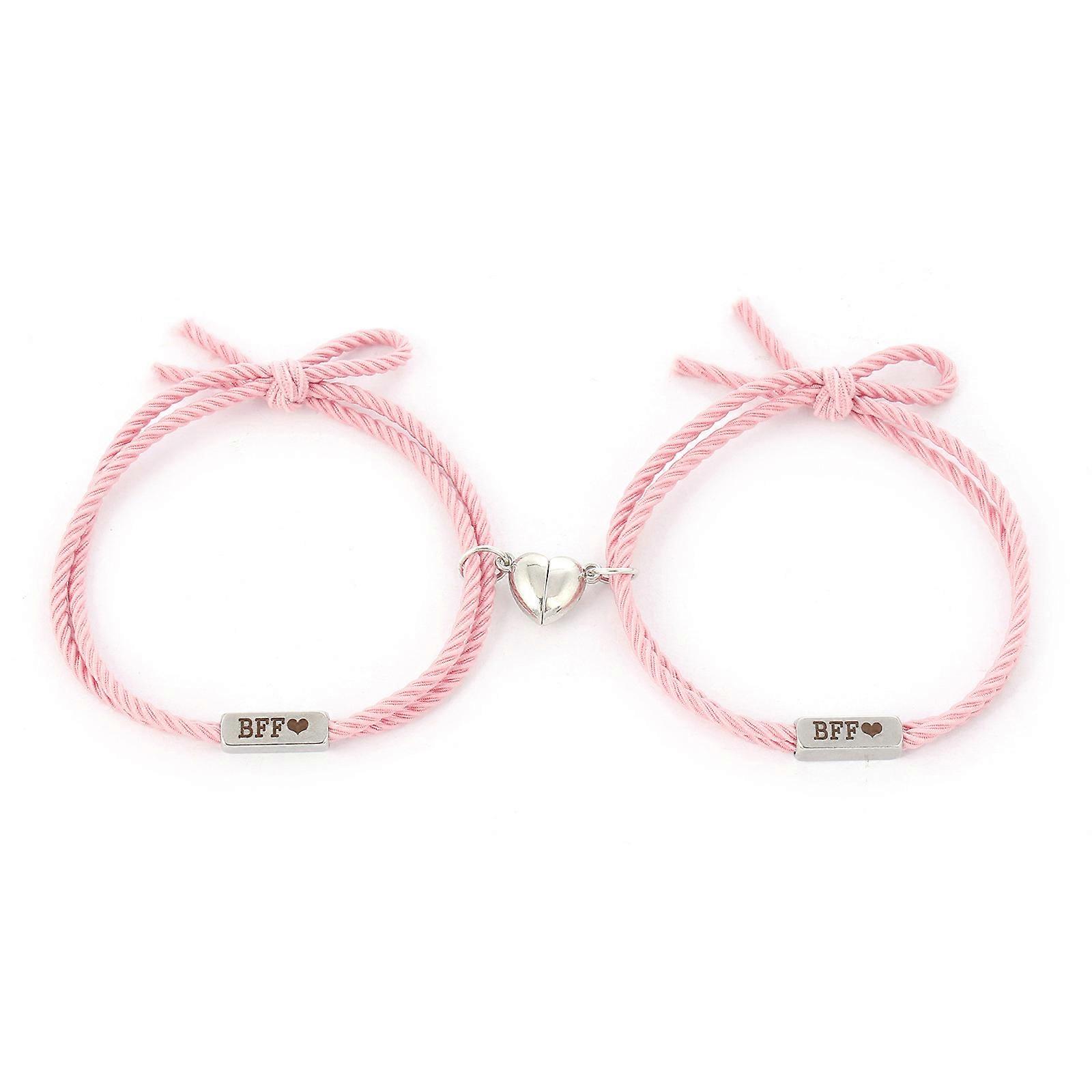 2 Pieces Friendship Bracelet Matching Heart Wristband for Women Men Magnet