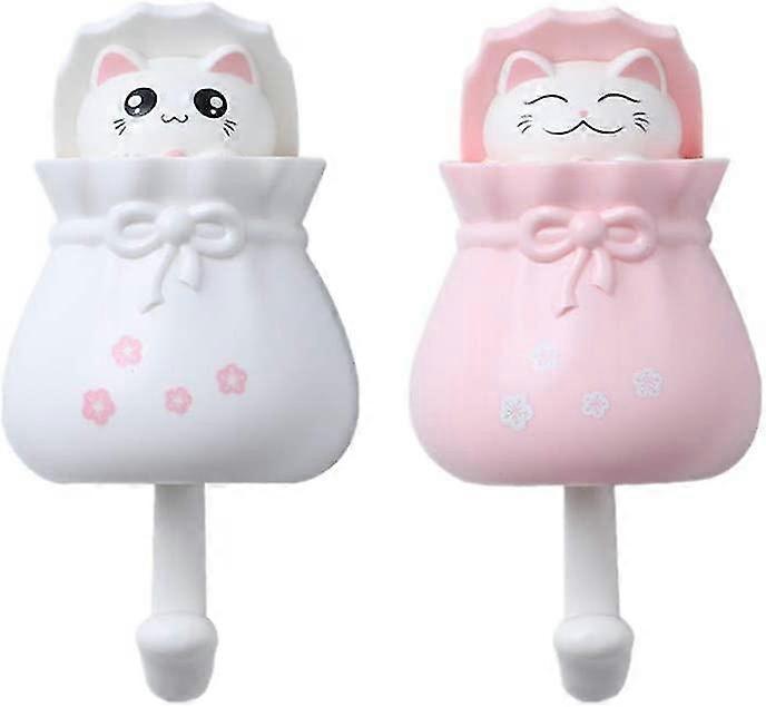 Self Adhesive Wall Hook Decorative Wall Coat Hook Cute Lucky Cat for Hanging Coats,Bags,Purses, Towels,Keys for Kids & Adults Home Office Use Set of 2(Lucky Cat) Colour Pink&white Material Polypropylene Mounting type Wall Mount Included componentsHook/ Sticker Cute cat Hide Hook: It looks like a normal hook, but when stuffs is hung on the hook, the cute cat will come out. Designed for those who just need hook and some fun and surprises. Multi-functional hook: A funny gift for kids friends. Interesting hangers for keys necklace bags towels coats temporary hanging in bedroom bathroom cloakroom laundry. It is sturdy and comes with double sided 3M tape to stick on patch or you can use two screws to attach it. No need to drill any holes. Material: ABS+ 3M tape; Size: 6.5 x 13 x 5.3 cm; Color: White/Pink; Package: 2 * Cute Cate Hook.