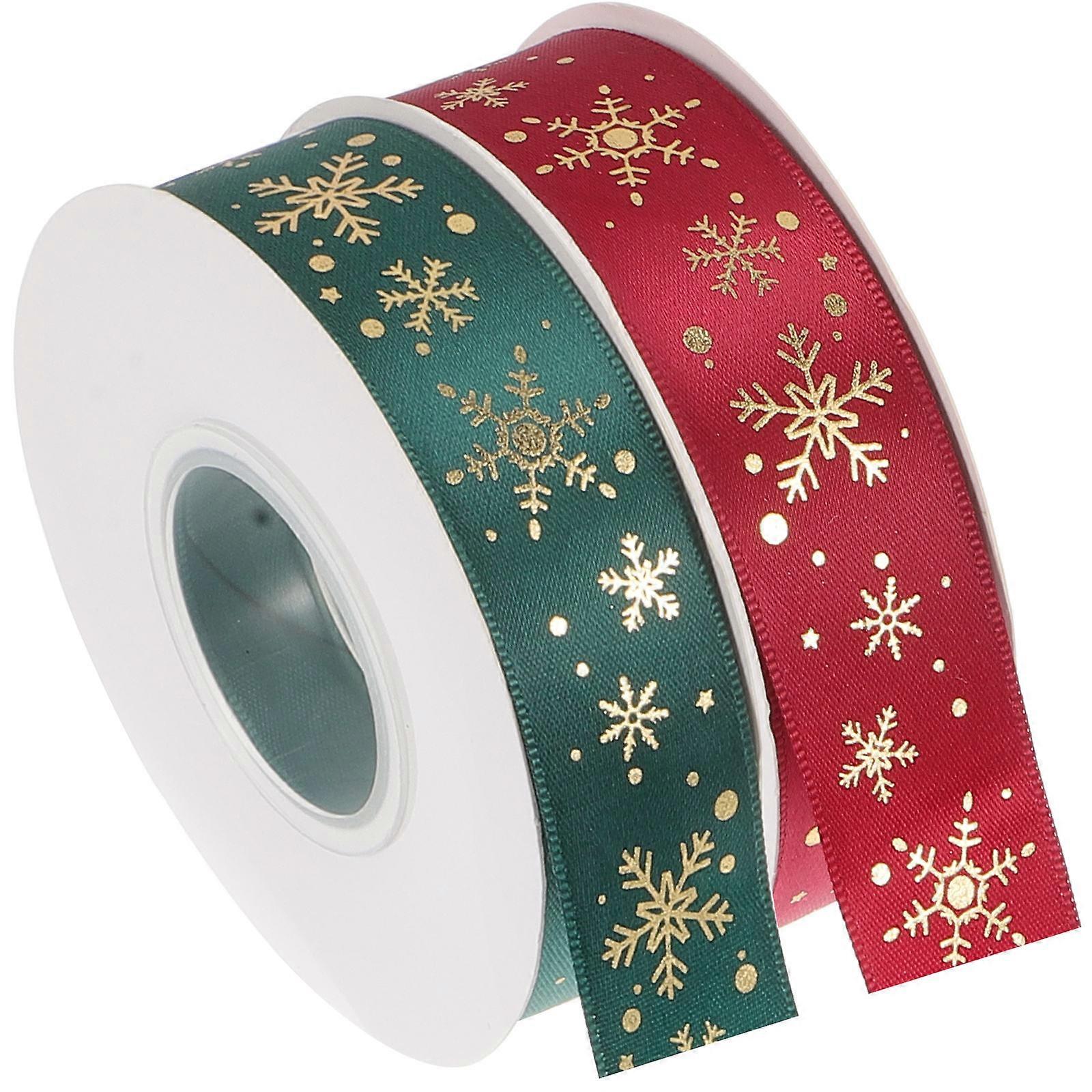 2 Rolls Polyester Christmas Ribbon with Snowflake Pattern for Xmas Tree Wrapping, Gift Boxes, Floral and Holiday Decorations