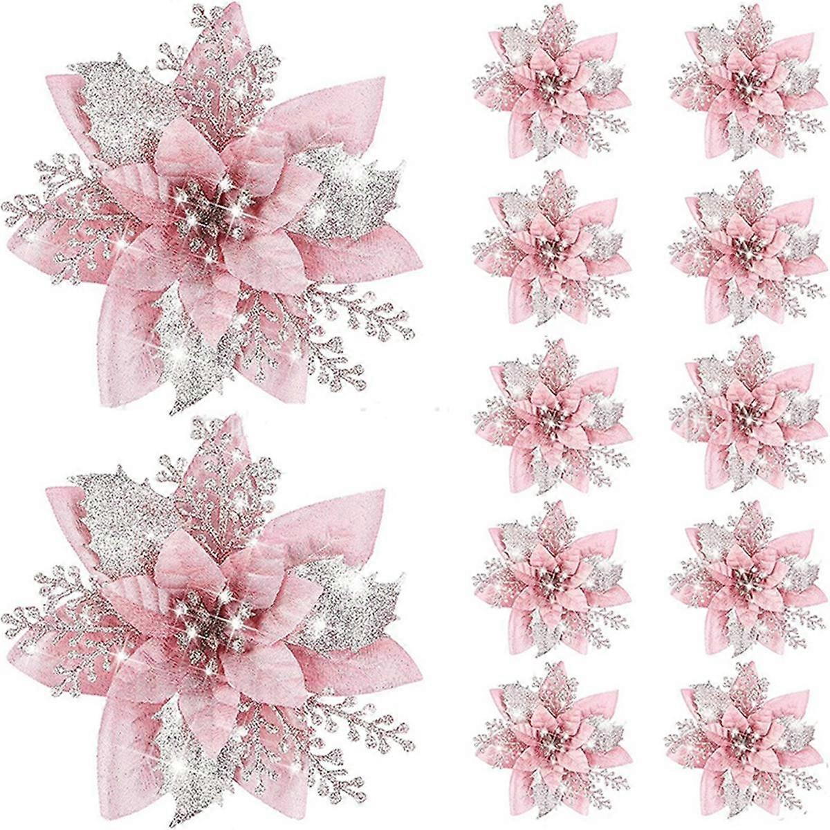 20PCS 14.5cm Glitter Artificial Christmas Flowers Merry Christmas Tree Decoration Happy New Year Or