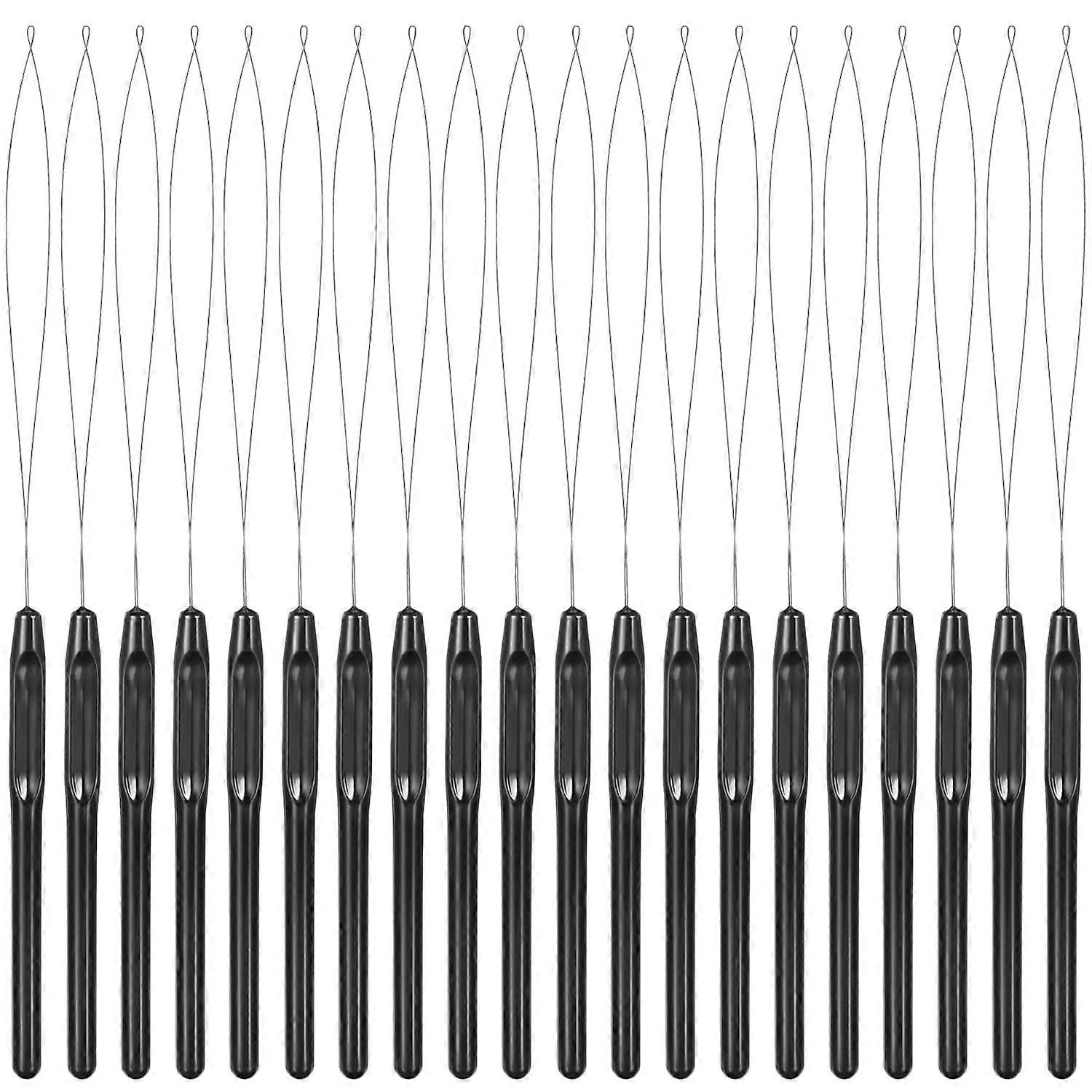 20 Pcs Hair Extension Loop Needle Tools - Hook Device for DIY Hair & Feather Extensions - Black Pulling Needle Beads