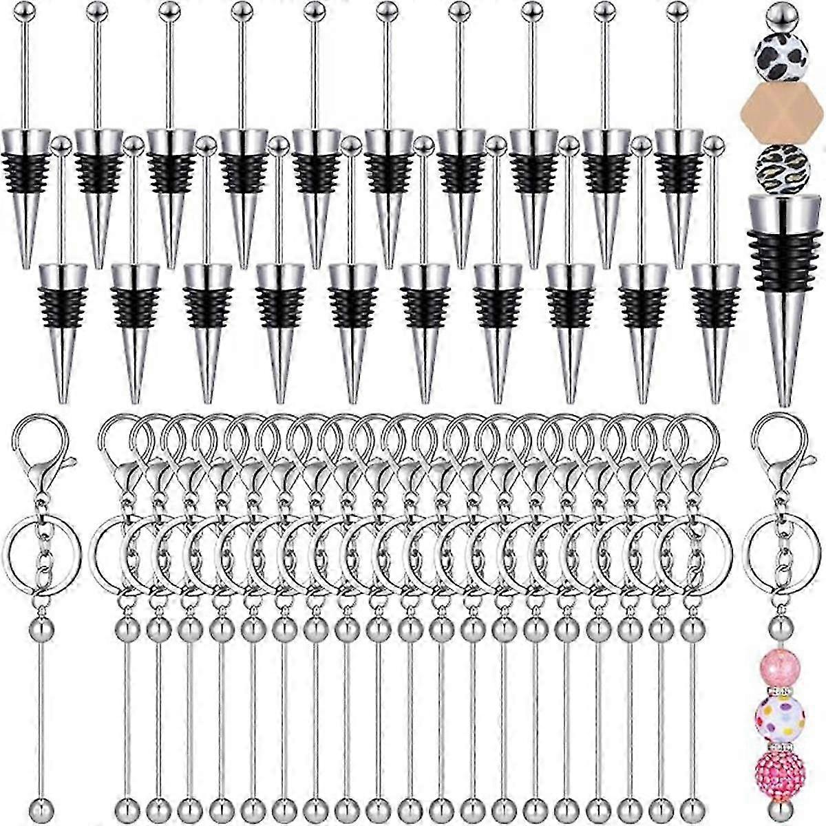 20 Sets of Beaded Key Chains Blank Beaded Wine Bottle Stoppers, Beaded Wine Stoppers Metal DIY Keyc
