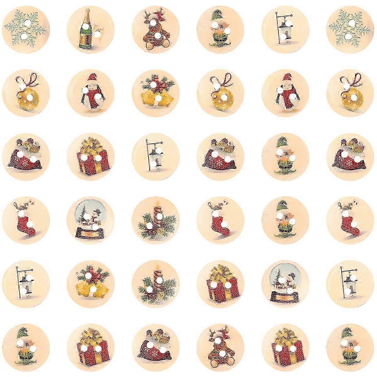 200pcs Christmas Wooden Button Sewing Buttons Christmas Craft Decoration