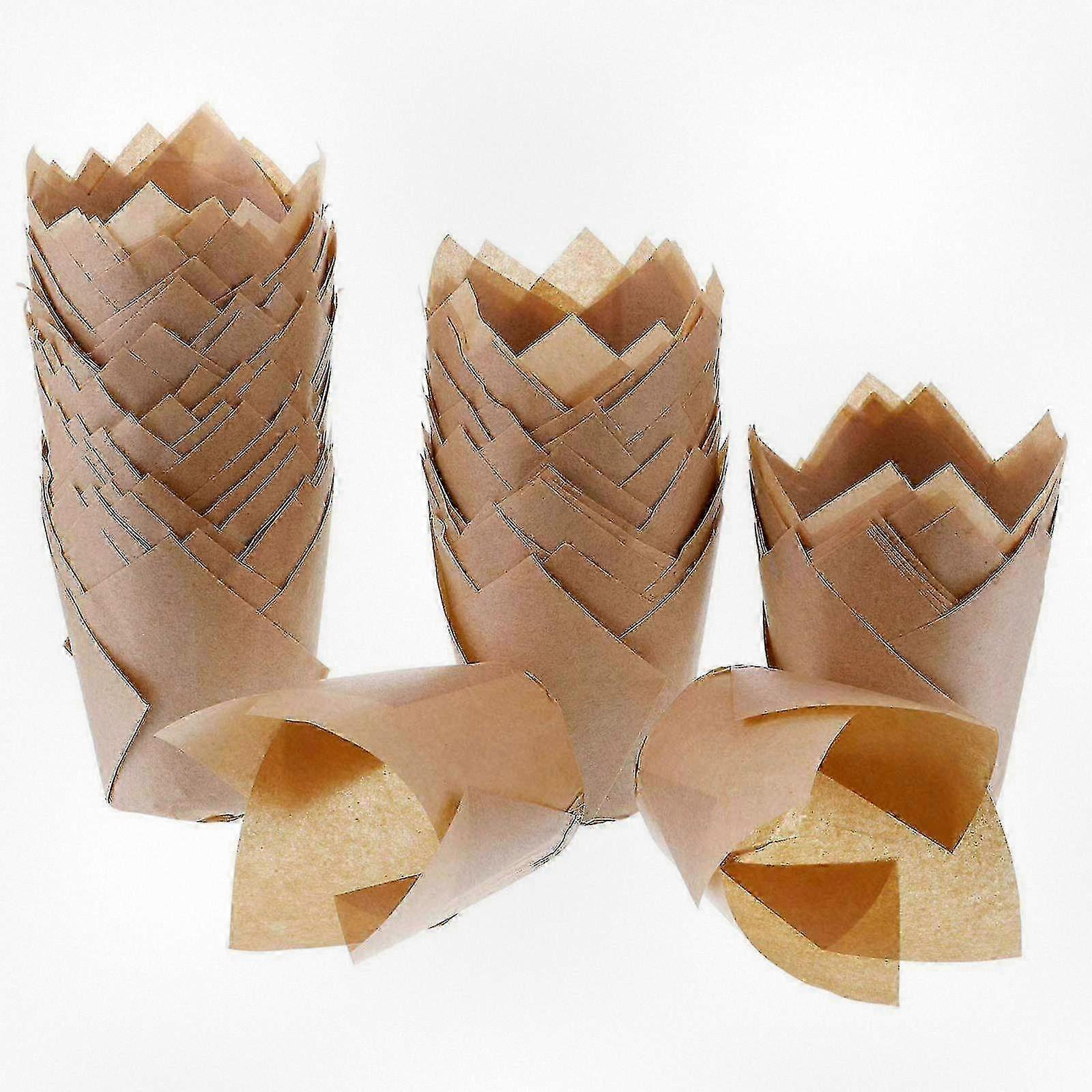 200 Pieces of Greaseproof Baking Paper Cups for Muffins, Tulip Cupcake Liners and Cupcake Holders, Natural Finish