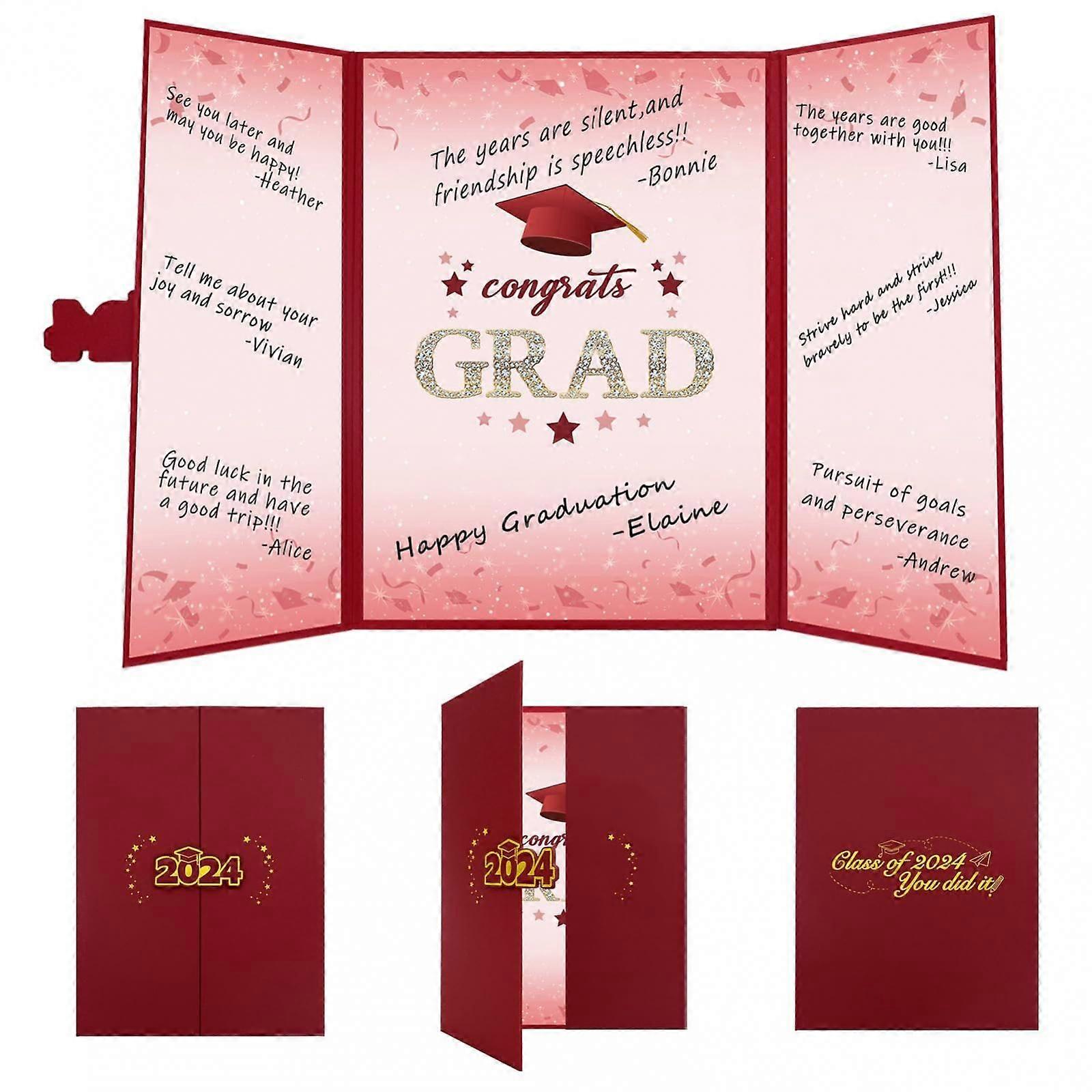 [Unique design] - The 2024 graduation signature book with blue print, graduation hats as the background, with diamond inlay typeface of 'GRAD'. The book innovates based on envelope seals, designing a special gilded 2024 shape seal. The cover is designed with gold stamping, giving a concave touch to the touch.[Material] - It is beyond ordinary cards rather than that is fragile and thin. Our 2024 graduation signature book is made of thick paper cardboard. Cover wrapped in professionally designed pearlescent frosted paper. The hard shell can keep this signature book long and keep your good memories.[Keep Sweet Memories Immortal] - This signature book with a sturdy cover is an alternative to a guest book or group 2024 graduation card. It can be a keepsake book that you will cherish forever. The expansion is 18 x 12 inches. Large enough for each party guest to sign with wishes, to create a lasting memory of your 2024 Graduation celebration.[2024 Graduation Creative Gift] - Collect the blessings, as graduation gifts to your friends or classmates. It is beyond ordinary gifts rather than that are often impersonal and forgotten.[Wide Application] -The meaningful "congrats grad" graduation signature certificate is ideal for congrats graduation party supplies. It is unique for the graduation which can be a graduation gift or a guest book alternative for graduation party decorations. It will attract everyone's eyes. Also be used as souvenirs after the graduation party is finished.