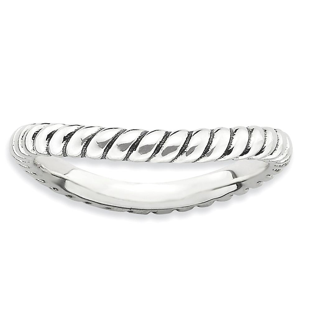 2.25mm 925 Sterling Silver Patterned Oxidized Stackable Polished Antiqued Wave Ring-Stackable-Ring for Women - Ring Size
