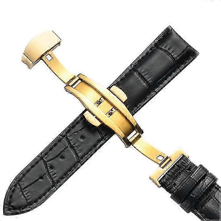 22mm Watch Strap with Gold Butterfly Clasp for Men and Women